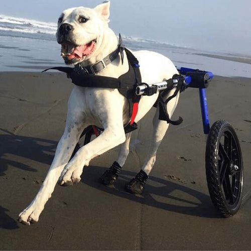 Give your pooch or pet a new beginning. A perfectly fitted body extension to explore, get some exercise and be a part of all the action. Freedom, comfort and safety with Walkin' Wheels.